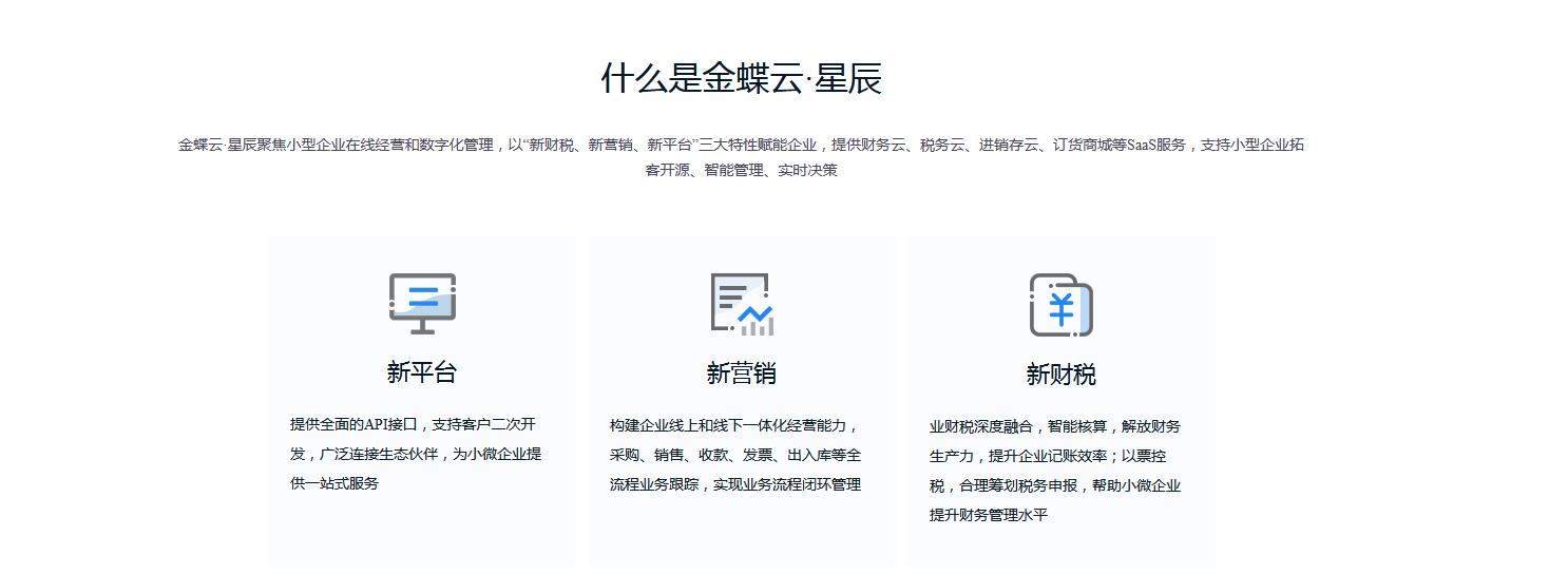 聚焦小型企业在线经营和数字化管理,以“新财税、新营销、新平台”三大特性赋能企业,提供财务云、税务云、进销存云、订货商城等SaaS服务,支持小型企业拓客开源、智能管理、实时决策