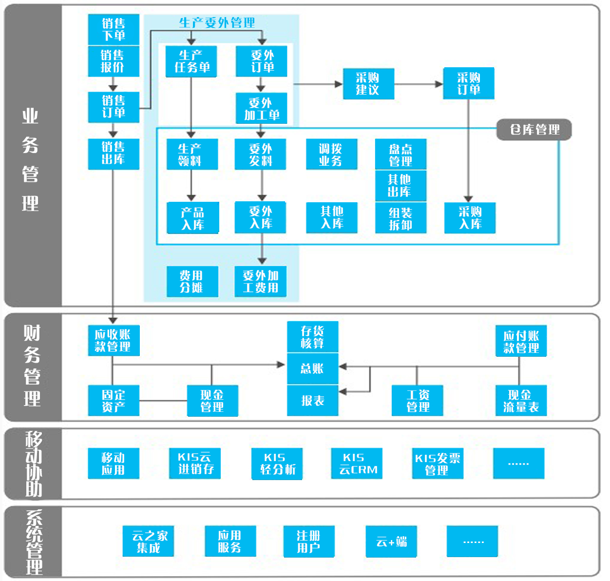 从采购、生产、仓存、销售、财务到移动经营等业务环节的数字化解决方案